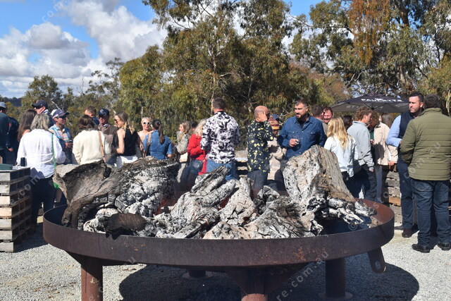 Crowd gathers around the fire pits at Paulett Wines. (478656)