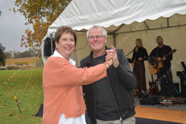 Peter and Yvonne Cloke from Mintaro dance to the live music at Sevenhill Cellars. (478656)