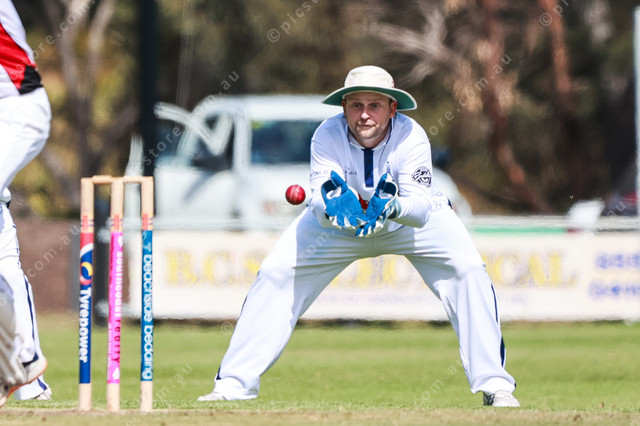 Michael Ledgard watches the ball into his gloves in the A Grade grand final. 467647_03