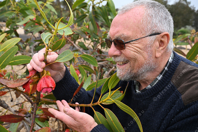 Melton Botanic Garden. Pic of Friends of the Melton Botanic Garden president John Bentley holding Eucalyptus Tetraptera. (Damjan Janevski). 505496_12