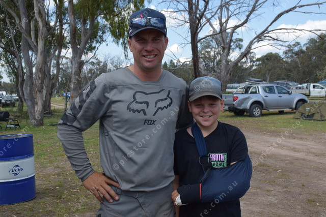 Unable to ride due to a broken arm, Beau Gilbert came along to cheer on his dad Nick.