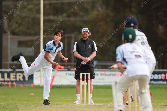 Victor Harbor’s Oliver Twelftree on the money with the ball against Goolwa in the Junior Colts. (Jesse Ehlers 528037_04)