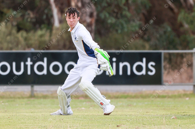 Encounter Bay wicketkeeper Carmelo Cooke with a run out chance against Port Elliot. (Jesse Ehlers 528037_18)