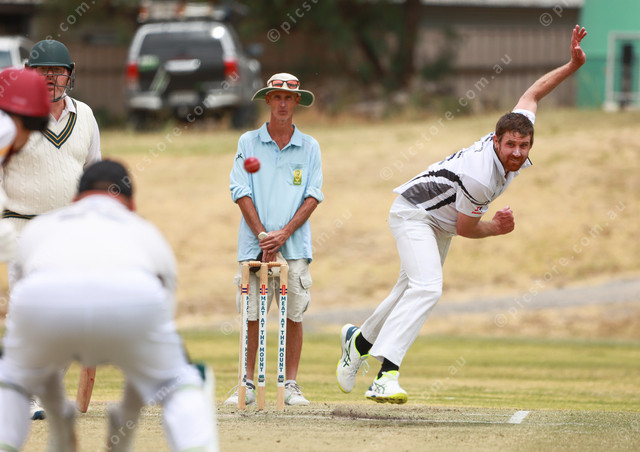 Goolwa A Grader Dean Vickery steams in against Mount Compass. (Jesse Ehlers 528037_30)