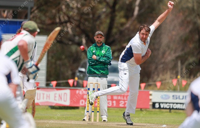 Encounter Bay bowler Shane Hastings bowls to the Rapid Bay batter. (Jesse Ehlers: 517854_20)