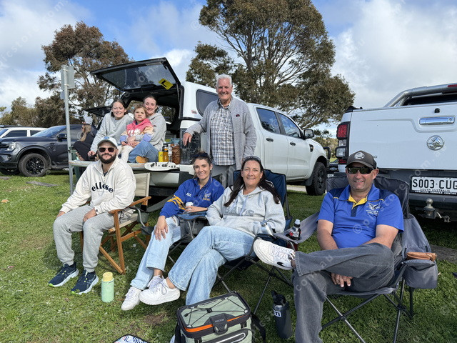 Parked up at Encounter Bay are Car-Sienn Burford, Ayla Jablonski, Elly Garrett, Jake Jablonski, Craig Garrett, Tyler Rigney Garrett, Susie Garrett, and Dennis Rice. (Mark Liebich: 500346_02)