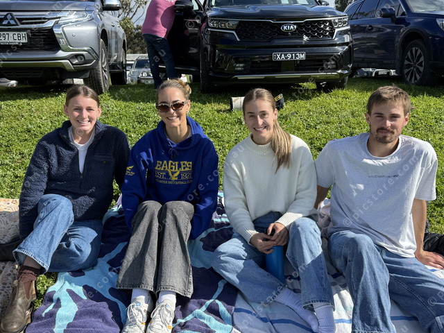 Emily Puckridge, Courtney De Barro, Kirriley Wagner, and Tom Ramke watch the footy at Encounter Bay. (Mark Liebich: 500346_03)
