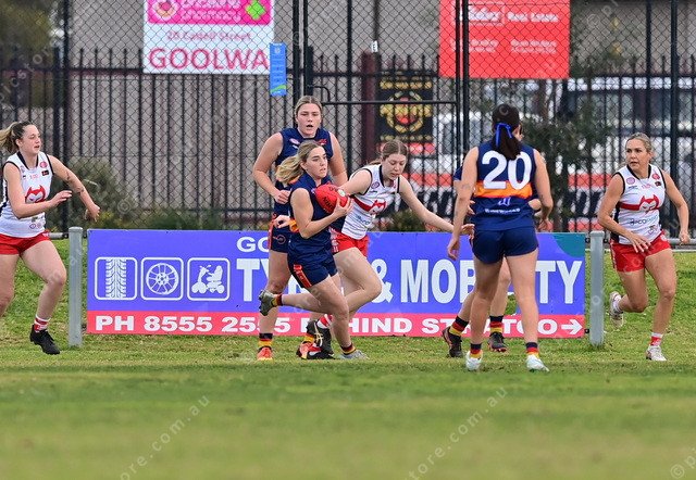 Taking the ball with one hand is McLaren Districts A grader Charlotte Watson. (Mark Liebich: 493945_25)