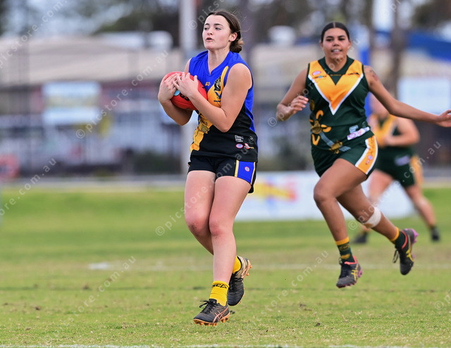 Yankalilla-Encounter Bay’s Halle James marks the ball on her chest during the A grade elimination final. (Mark Liebich: 493945_46)