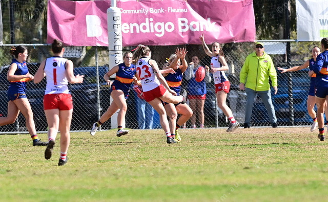 Willunga’s Jess Harris sends the ball into the forward line during the A grade grand final. (Mark Liebich: 496730_06)
