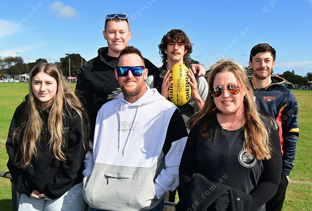 Back from left, Lachlan Guinan, Patrick Maxwell, Connor Guinan, front from left, Alannah and Chris Guinan and Sharna Ries. (Mark Liebich: 497037_03)