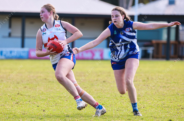 Willunga’s Mahli Littlely speeds ahead of her opponent during the under 17s. (Jesse Ehlers: 487311_11)