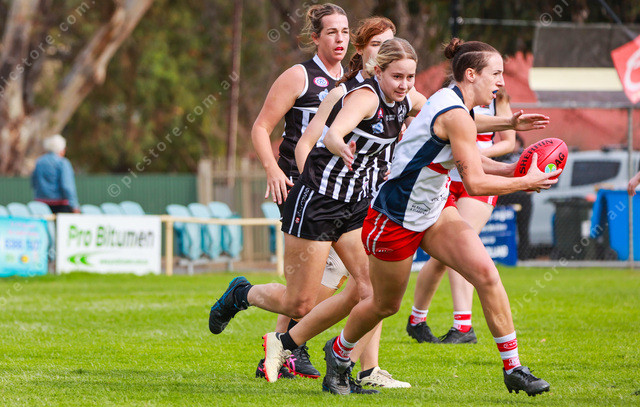 Willunga’s Tamara Page streams towards goal during her A grade match against Goolwa-Port Elliot. (Jesse Ehlers: 475984_04)