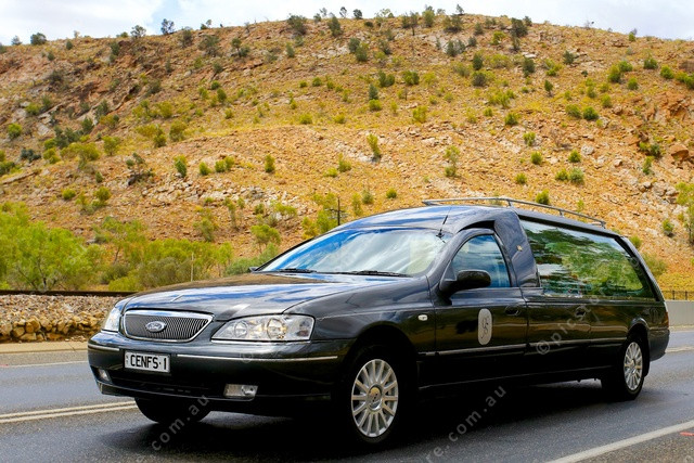 HEARSE: Mr Shaw’s Hearse passes through The Gap on its way to the Alice Springs Cemetery. (PIC: PHIL WILLIAMS 531822_07)