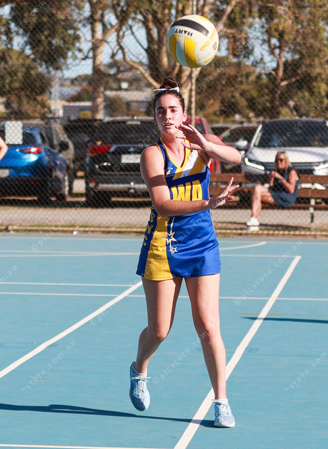 Encounter Bay wing attack Taya Forbes moves the ball into the goal third during her League match against Yankalilla. (Jesse Ehlers: 471835_04)