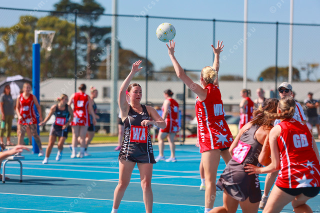 Goolwa’s Amber Harlow loops the ball during her League match. (Jesse Ehlers: 471835_05)