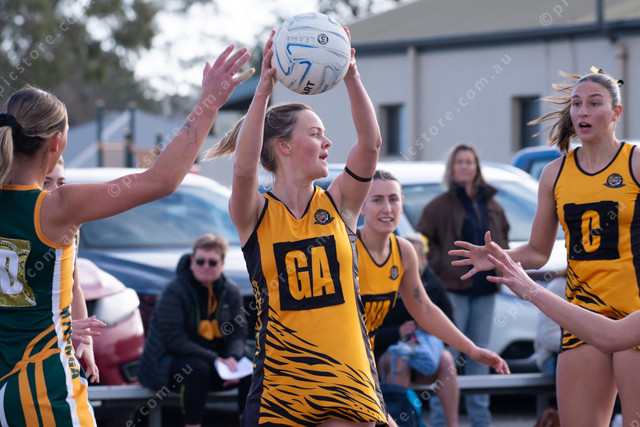 Yankalilla goal attack Brooke Jeffs is surrounded during her League game on July 5. (Dani Brown: 489927_06)