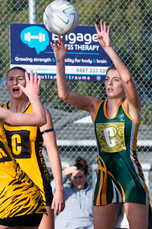 Myponga centre Ella Anderson passes the ball into the ring during her League game on July 5. (Dani Brown: 489927_14)