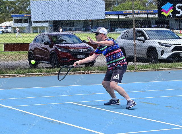 Darryl Pearce is well balanced hitting a forehand. 524655_03