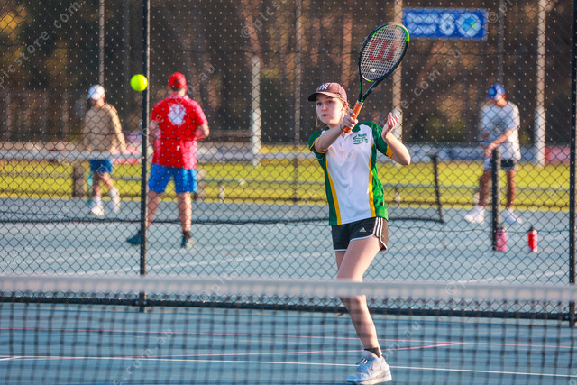 Cherry Robinson, of John Wesley Green, whacks the ball over the net during the grand final. (Jesse Ehlers: 467378_07)