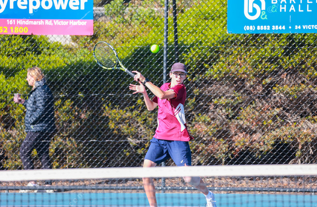 Mount Compass’ Stirling Down powers through this shot during the grand final. (Jesse Ehlers: 467378_17)