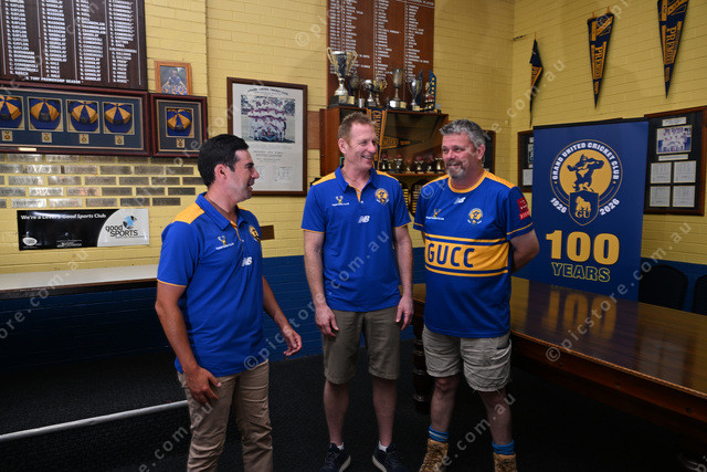 Grand United Cricket Club is turning 100. Pic of president Alan Hale, and former players Michael Brasher and Matthew Frew. (Damjan Janevski). 529791_05