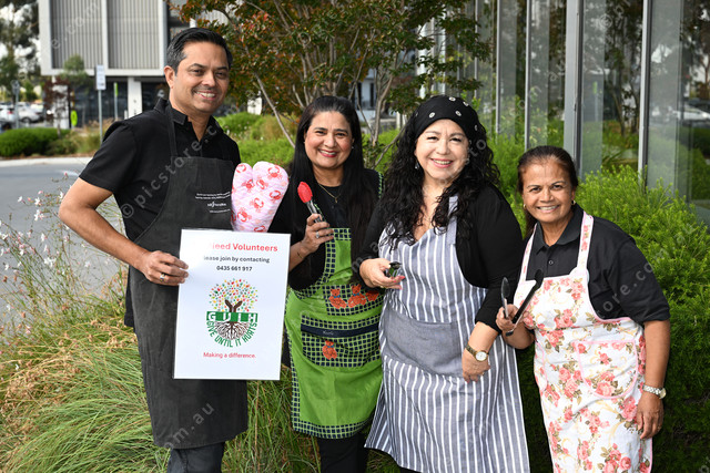 GUIH group hosting a free sausage sizzle. Pic of Garnet Jacob, Veena Moraes, Alejandra O’Connell-Bello and Audrey Gambian. Photo by Damjan Janevski. 469481_03
