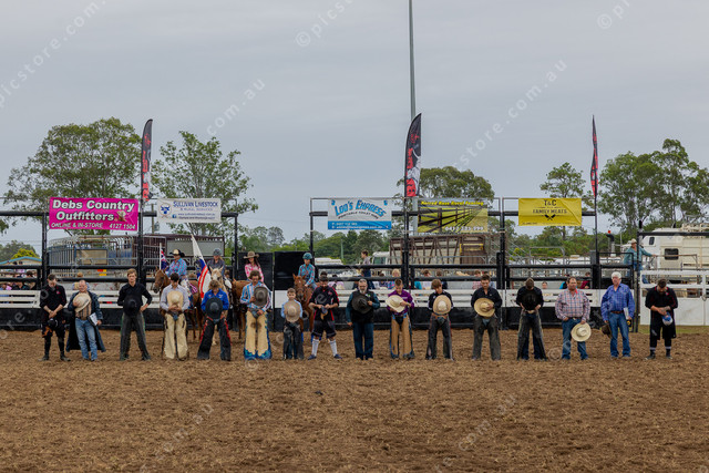 Pausing for the national anthem before the action begins.