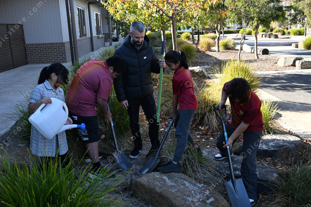 Garrang Willam Primary School have launched a program called Habitat Heroes. Pic of teacher Michael Petaras with students Avee, Preston, Akira and Sirisha. Photo by Damjan Janevski. 482497_03