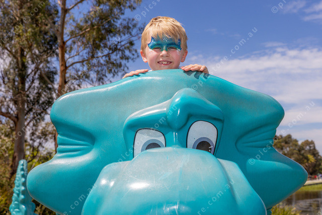 Training his Dragon after some face painting.