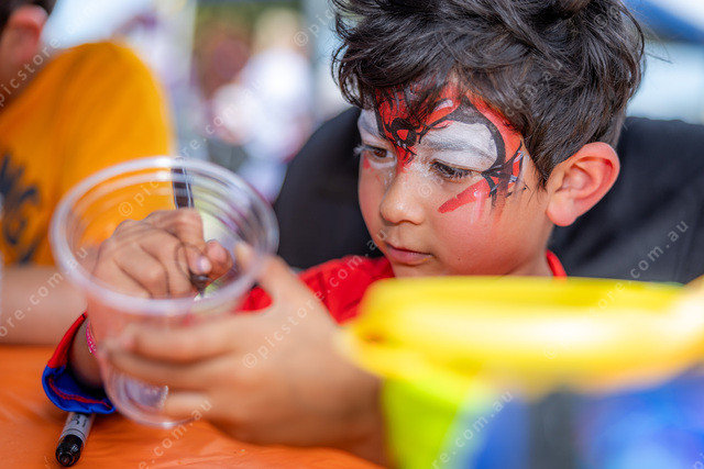 6yo Mahad from Officer putting a design on a cup/beaker.