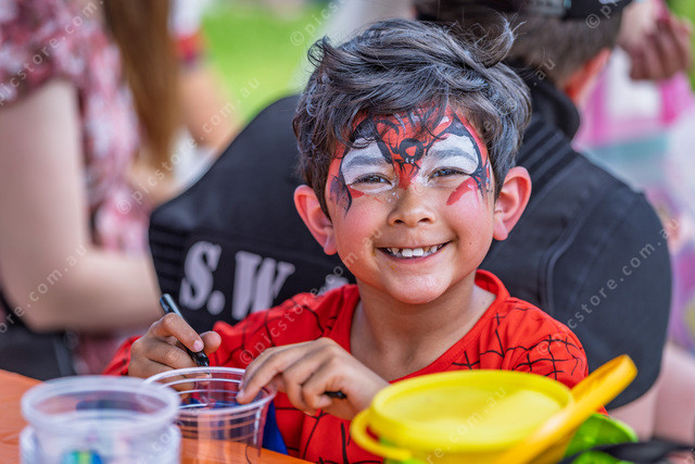 6yo Mahad from Officer putting a design on a cup/beaker.