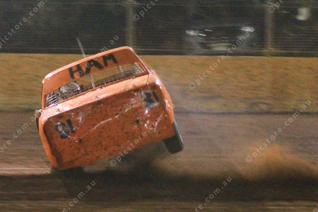1 GOING: Hamish Chmielewski’s Corolla begins a series of two barrel rolls after catching the windrow (PIC: PHIL WILLIAMS)