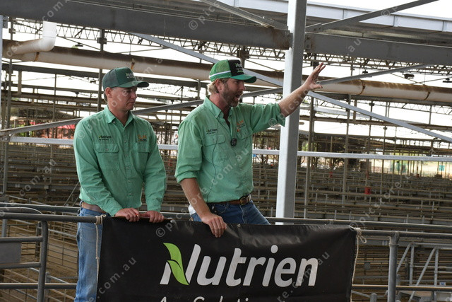 Nutrien Agent Rob Aldridge with auctioneer Sam Savin, who started off the day’s action.