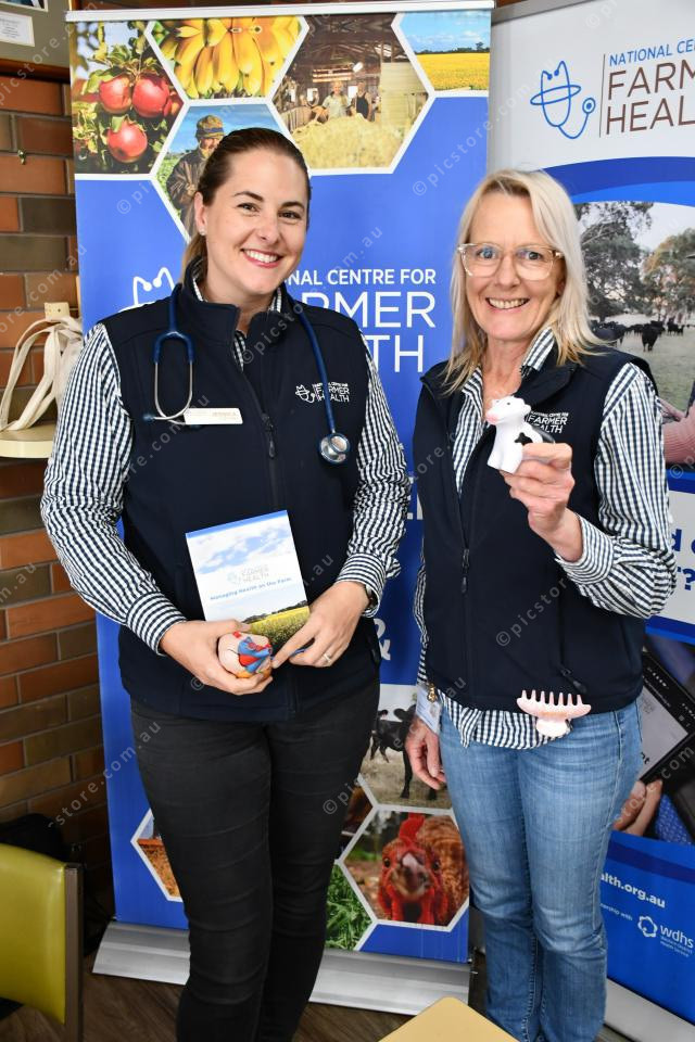 Farmer Health Clinician Jessica Fletcher with program co-ordinator Tracey Hatherell from the National Centre for Farmer Health were at the weaner sales to promote farmer health.