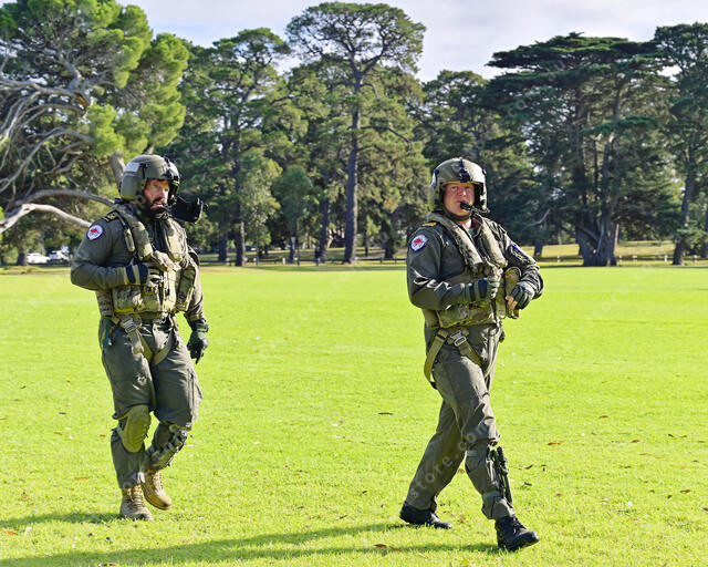 Petty Officer Brad Firkin and Lieutenant Aaron Glenville walk from the helicopter to talk with students (Ivan Kemp) 467140_07