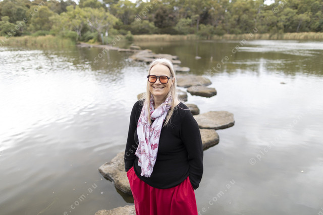 Dominique Hes takes people on tour over the stepping stones, she says the water level was designed to be shallow_Ljubica Vrankovic