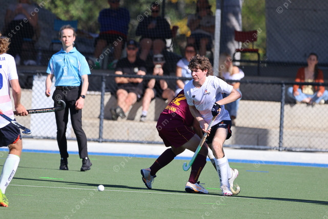 South Australia’s Hamish Webb nutmegs Queensland’s Jared Thomas.