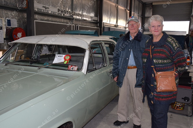 Phil and Marilyn O’Brien proudly stood alongside the HD sedan, adding to the charm and character of the classic car lineup.