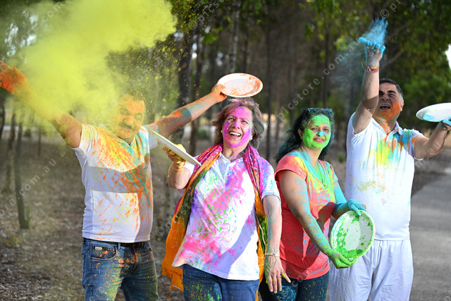Holi Festival coming up in Brimbank. Pic of Pradeep Redhu, Poonam Singh, and Manish and Rakesh Kaushik. (Damjan Janevski). 535459_10