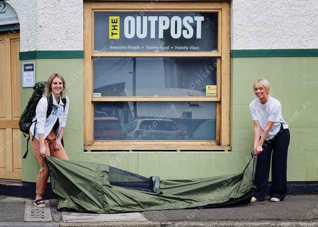 Phelia Harrison and Grace Dove with one of the sleeping bags (Ivan Kemp) 528561_01