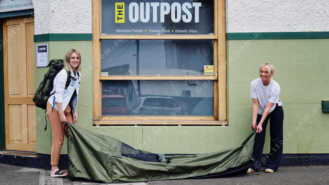 Phelia Harrison and Grace Dove with one of the sleeping bags (Ivan Kemp) 528561_02