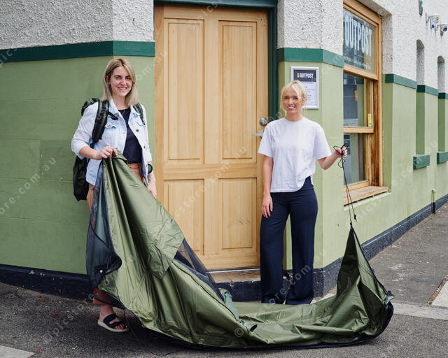 Phelia Harrison and Grace Dove with one of the sleeping bags (Ivan Kemp) 528561_03