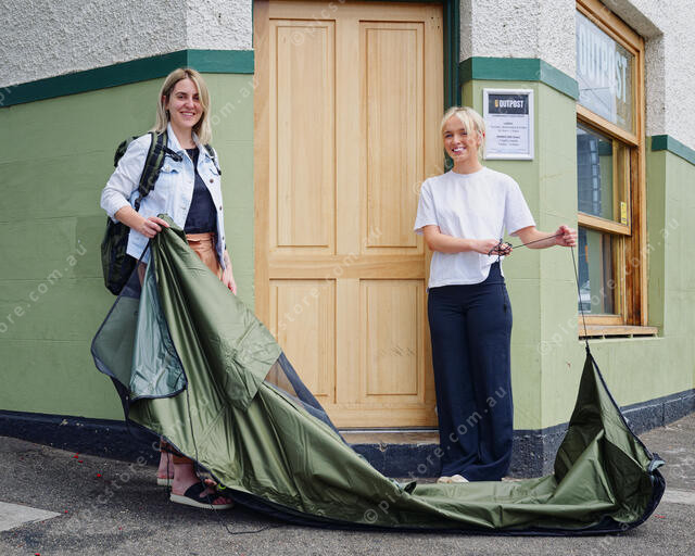 Phelia Harrison and Grace Dove with one of the sleeping bags (Ivan Kemp) 528561_04