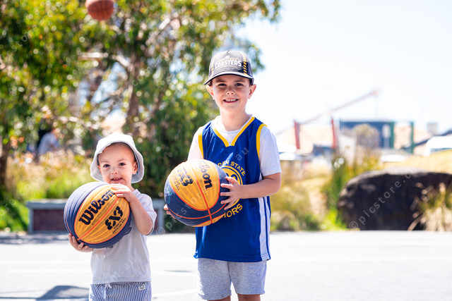 454253_05 Charlie Clark, 2, and Max Clark, 5, from Portland at the 3×3 non competitive basketball event. They were at the hoops with dad Brad.
