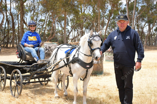 Learning to master the sport of horse driving is Margaret Sperrin, with her tutor world number one, Boyd Exell in Hamilton. (Ciaran Thow: 528443)