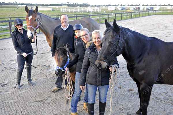 From left, Emma Wolsley with ‘Noni’, Cr Geoff Ablett, Alexander Norris with ‘Charlie’ the Shetland Pony, Kylie Matz and Lynda Hayes with “Abbey Rose’. All here at Genevra Park. 171333_01
