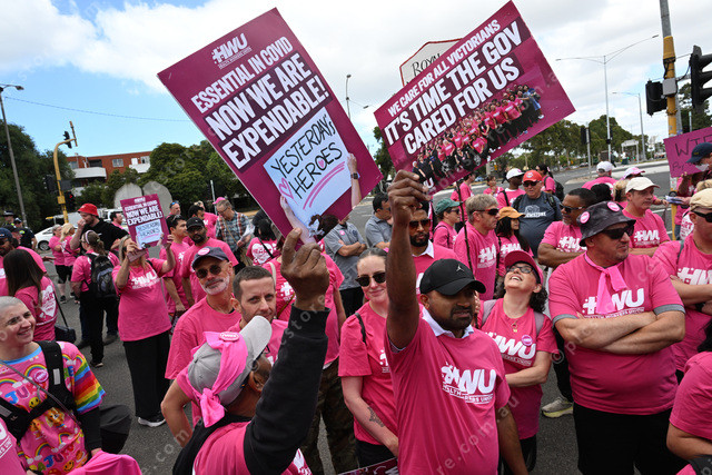 Footscray Hospital. Pic of HWU protestors outside the hospital. (Damjan Janevski). 535233_15