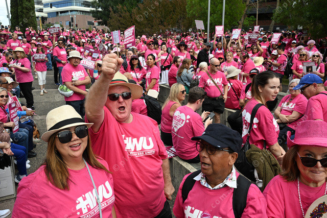 Footscray Hospital. Pic of HWU protestors outside the hospital. (Damjan Janevski). 535233_24