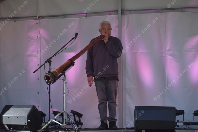 Wurundjeri elder Murrundindi opening the event with didgeridoo performance. (Dongyun Kwon: 500000)